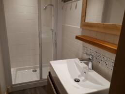 - Salle de bain : avec douche, lavabo, placards de rangement. * W-C indépendant.